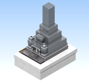 本日下記の昔ながらの形『8寸3段和型』の墓石が完成致しました。下のカラ-CAD図面は、このお客様の墓石の完成予想図面です。この墓石はインド産最高級石材で、見た目も最も細かな石の目で、高級感があります。